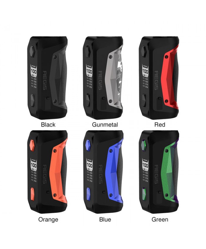 Geekvape Aegis Solo Mod powered by a high-amp 18650 battery, the latest AS Chipset allows this mod to fire up to 100W along with 10ms quick firing and various working modes. Compared with the previous Geekvape Aegis series products, the Aegis Solo inheriting the waterproof, shockproof and dustproof features from the previous Aegis, it adopts a smaller and lighter chassis with remarkable durability and comfortable hand feeling. In addition, there is a 0.96" LED display screen to show the vaping data clearly and the mod also supports quick USB charging along with multiple safety protections. 6 colors to choose from.