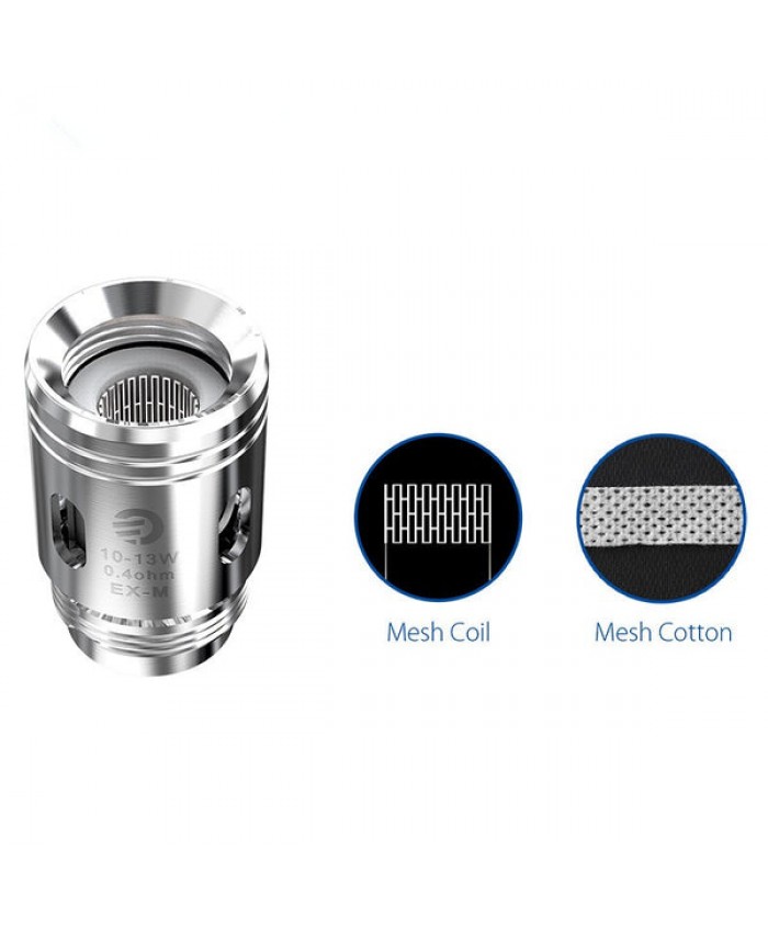 The Joyetech EX-M Mesh Head is designed for the Joyetech Exceed Grip Starter Kit. It uses new Mesh cotton as its wicking material, which is made of plant fibers and absorbs e-liquid more fully and quickly, make the flavor much more pure and decent. 5pcs in a pack.
