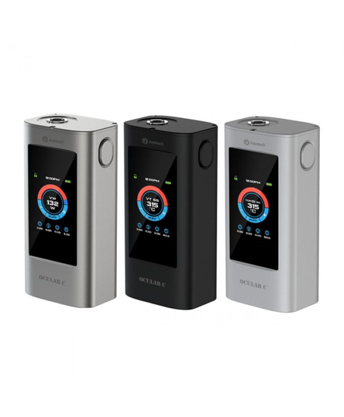The Joyetech OCULAR Cis a touchscreen box MOD with a very smart internal system. Featuring the first and one of the most capable 1.68-inch color touchscreen, the new Ocular C presents all the essentials on its clear and precise display. Powered by two replaceable 18650 batteries, Ocular C applies a sophisticated temperature control suite coupled with a 150W maximum output(will be available to upgrade to 200W). The Joye Ocular C Mod can fire up to 150 watts (upgradeable to 200 watts with future firmware update) and supports nickel, titanium and stainless steel 316 wire in temperature control mode. You may view your photos and the time when set as a screensaver. You may upload and listen to imported MP3 music files using the Joyetech VT software. A 3.5mm standard headphone jack on the side of the device is available for your headphones as well.OCULAR C also supply firmware upgrade and connecting with mobile APP.