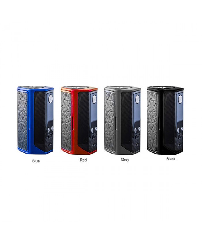 The Modefined Prism 250W TC Box Mod is an ergonomic, high performance triple 18650 device with 250W of maximum output, comprehensive temperature suite, and a visually striking chassis. The Prism features a polished carbon fiber or leather battery door cover that complements the refined carbon fiber control face area and vibrant colors of the Zinc Alloy frame. With 0.96in big OLED screen and the powerful 250W board is capable to fire up in zero second and to reach its best capacity. The chipset is notably intelligent, equipped with output wattage range of 7 to 250W, minimum atomizer of 0.05ohms, and intuitive temperature control with support for Ni200 Nickel, Titanium, and three types of Stainless Steel heating elements.