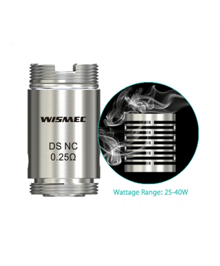 Brand-new WISMEC Motiv DS NC Replacement Coil 0.25ohm is specialized for Wismec Motiv. The wattage range of Motiv DS NC is from 25-40W. It can also work under VW, Bypass, TC-SS and TCR modes.