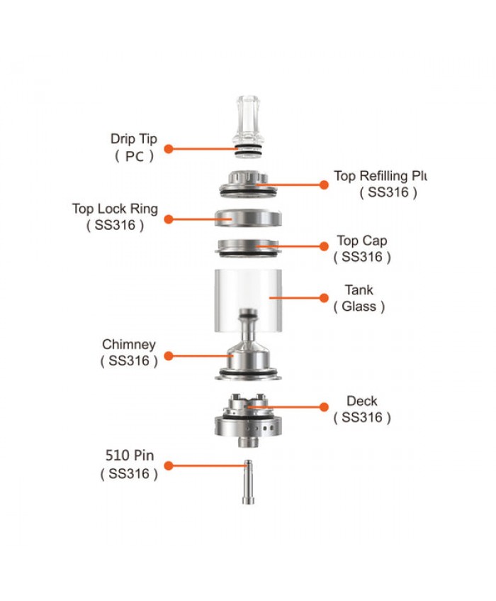Phevanda Memo MTL RTA is made of SS316 body & POM tube with 22mm diameter, which is compatible with most mod.The PC drip tip is anti-heat and it protects your lips too. Memo RTA maintains 3.5ml capacity with top filling design. The Phevanda Memo RTA adopts replaceable 510 pin with 3 types of AFC holes, so you are capable of enjoying different air inlet with smooth vaping experience.