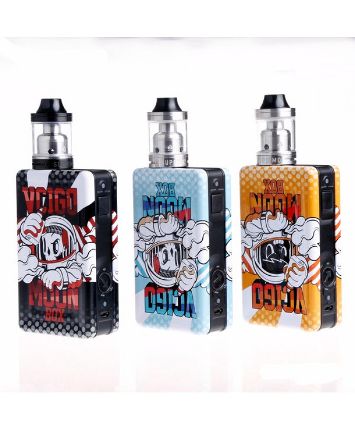Vcigo Moon Box Kit is coming Now! It consists of Moon Box and Moonshot tank, featuring with a light weight but powerful wattage to reach 200W Vcigo Moon Box is popular in market. The tinplate and plastic construction designed for the comfort and portability in hand.The colorful artwork design with the high quality gives you the delight and admiration.No display screen is on the device but with a simple battery LED indicator light. Simple device simple operation.