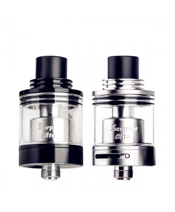 The Wotofo Serpent Alto RTA 2.5ml Tank Atomizer uses 510 thread ,features an air hole redirect to the coil which will provides you with an amazing flavour.22mm in diameter with a 2.5ml e-juice capacity, this single coil RTA atomizer aims to provide the best flavor possible. The Alto features an air hole redirect to coil, Pyrex glass with 304 SS body and delrin drip tip without overheating.
